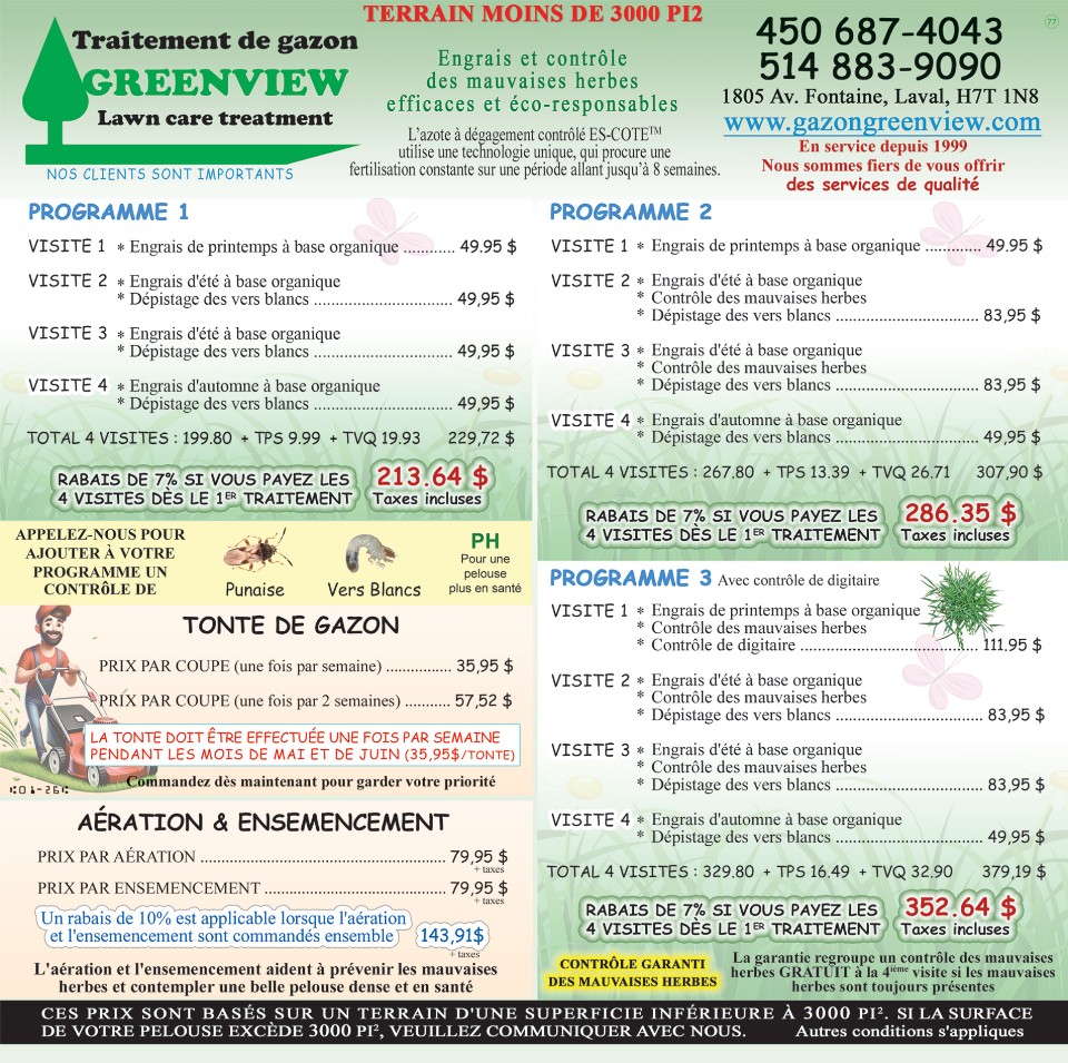 1 tonte par semaine 35,95$/tonte