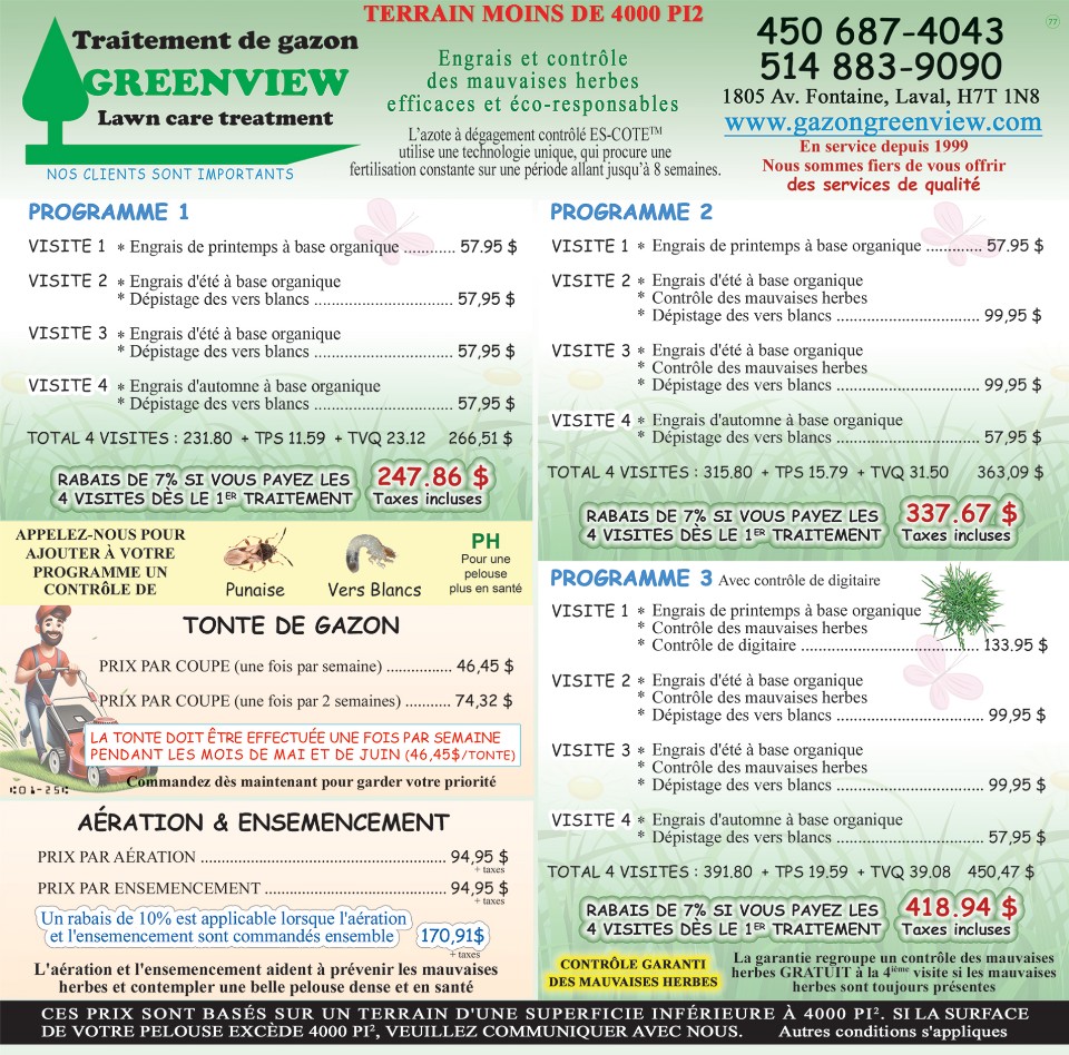 1 tonte par 2 semaines 74,32$/tonte